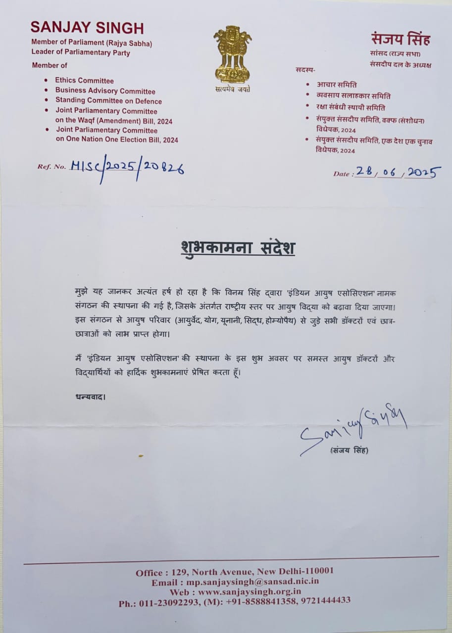 Mr. Vinamra Singh is the founder of Indian AYUSH Association. He is also working at the post of National President of this Association. Mr. Saif Ali is working at the post of Vice President of this association. Mr. Ram Poojan Agrahari is sarving at the post of National Secretary in this association. Mis. Swarnika Thakur is also sarving or posted at the post of National treasurer..